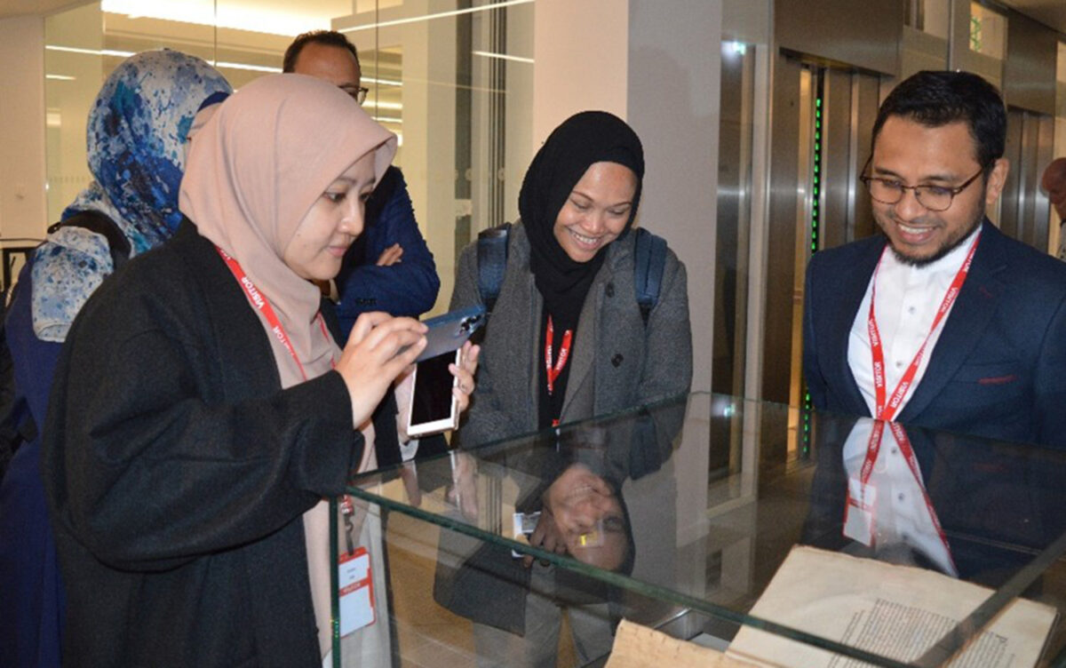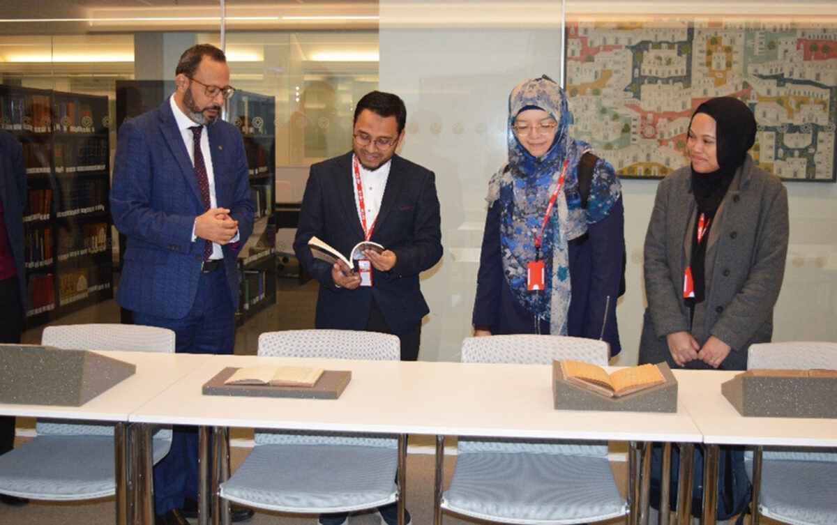 Hussain Jasani, Head of the South Asian Studies unit, received the guests, who were then taken on a tour of the AKC by Russell Harris, editor at IIS. As part of the tour, the delegates visited the Aga Khan Library (AKL), where Dr Walid Ghali introduced them to some of the special collections held at the AKL and by the Ismaili Special Collections Unit. The delegates were pleased with the tour and expressed their interest in benefiting from the rich collection of materials held by the AKL. Some of the delegates appreciated the way the design elements of the AKC expressed how an academic building informed by Islamic ideals and values could look.